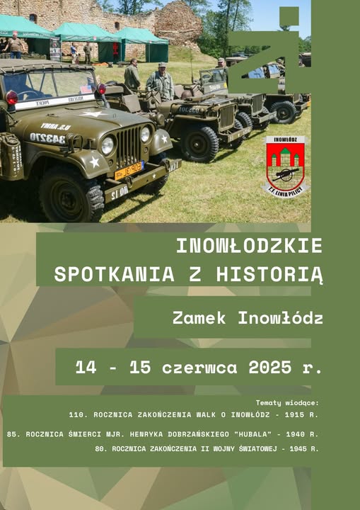 Zapraszamy miłośników historii, militariów na IV edycje Militarnego Pikniku w Inowłodzu – wydarzenia które łączy edukację z pasją i pamięcią o dawnych czasach! 14-15 czerwca 2025 teren zamku w Inowłodzu.