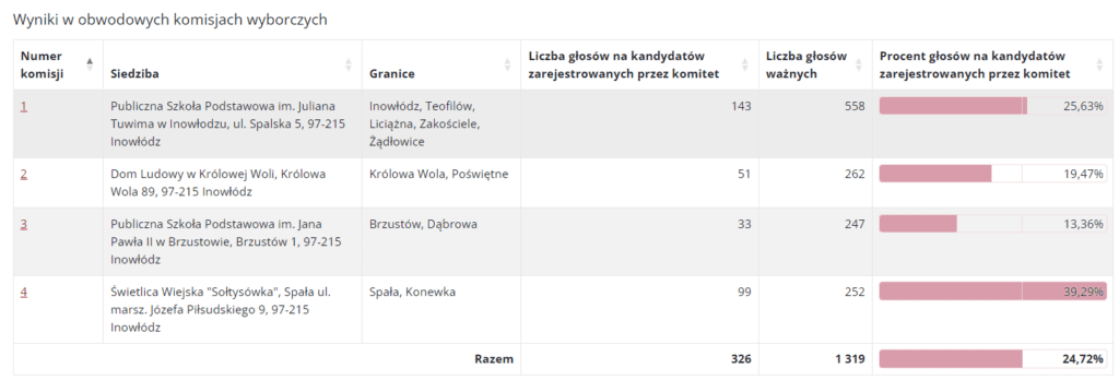 | Liczba głosów na kandydatów zarejestrowanych przez komitet w gm. Inowłódz | 326 |