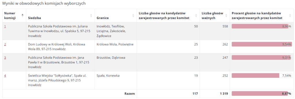 | Liczba głosów na kandydatów zarejestrowanych przez komitet w gm. Inowłódz | 117 |