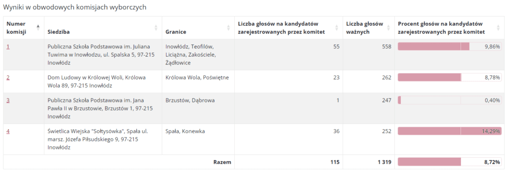 | Liczba głosów na kandydatów zarejestrowanych przez komitet w gm. Inowłódz | 115 |