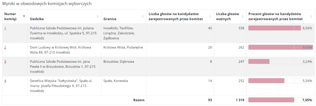 | Liczba głosów na kandydatów zarejestrowanych przez komitet w gm. Inowłódz | 93 |
