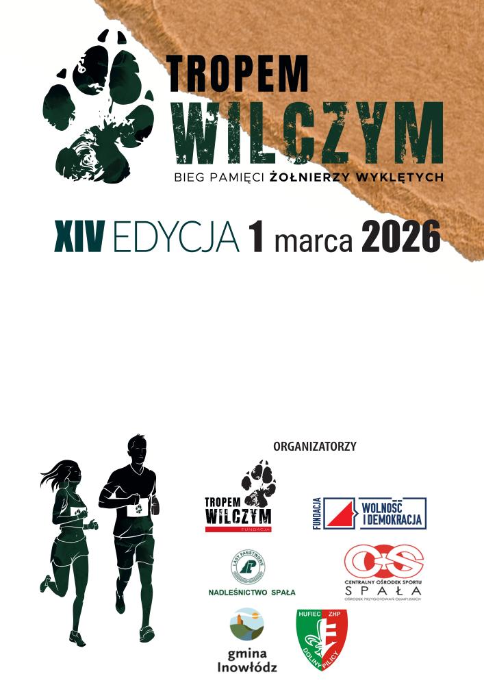 Nadleśnictwo Spała wspólnie z COS Spała i Gminą Inowłódz serdecznie zaprasza na XIV edycję biegu „Tropem Wilczym Bieg Pamięci Żołnierzy Wyklętych”, która odbędzie się 1 marca 2026 roku.