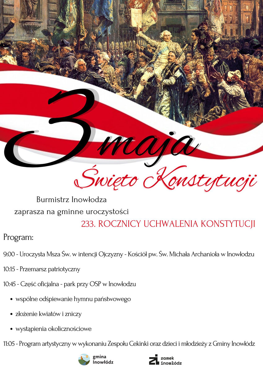Zapraszamy na obchody 233. rocznicy uchwalenia Konstytucji 3 Maja w Inowłodzu!